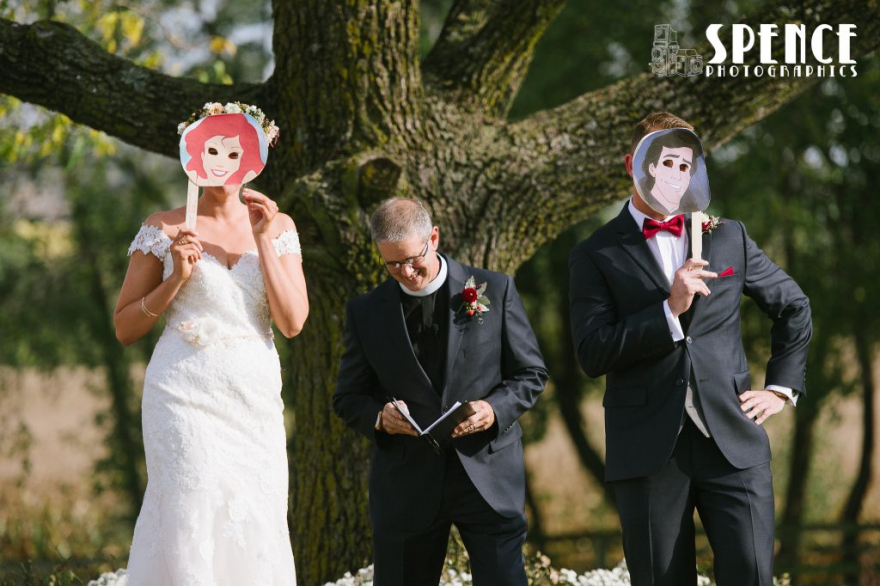 Justin’s dad officiated the ceremony, which included a few nods to the couple’s love of Disney.