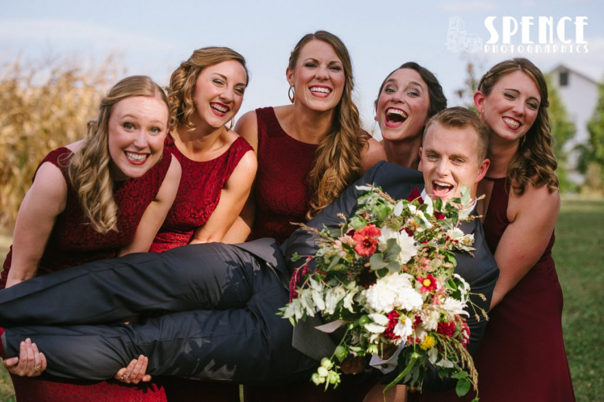The wedding party raided our photo booth props for their big entrance!